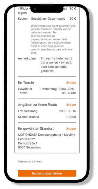 Egal ob Inspektion, Reifenwechsel oder Diagnose: Echtzeit‑Verfügbarkeiten, klare Preisinformationen und automatische Bestätigungen sorgen für reibungslose Abläufe und geringeren Aufwand im Backoffice.