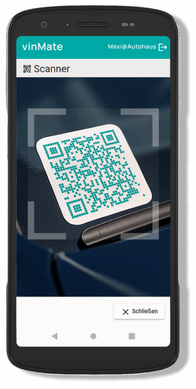 Ein QR‑Code auf der Fahrzeugscheibe führt Interessenten direkt zur mobilen Fahrzeugseite mit allen Infos: Modell, Preis, Bilder, Ausstattung.